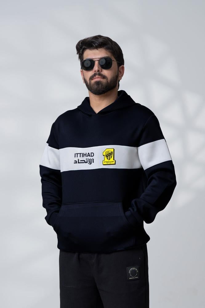 هودي أنيق وعصري باللون الأزرق مع شريط أبيض يتوسطه شعار نادي الهلال، مصنوع من خامات مريحة وعالية الجودة لتوفير الراحة والأناقة لمحبي النادي. يتميز بتصميم كلاسيكي مع قبعة للرأس وجيب أمامي، مما يجعله مثالياً للاستخدام اليومي ولإظهار دعمك لفريق الهلال.