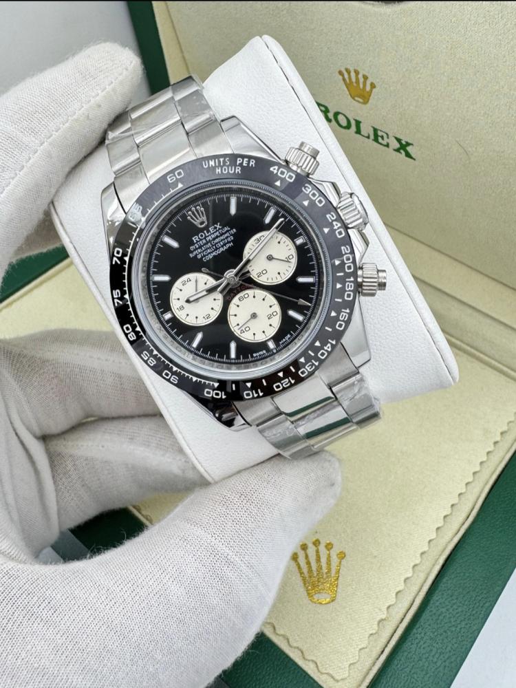 ROLEX DAYTONAساعات رولكس دايتونا رجاليالمقاس: 41الجنس: رجالي.المكينة: بطاريهالساعه مضمونه من تغير لون الاستيل او دخول الماء