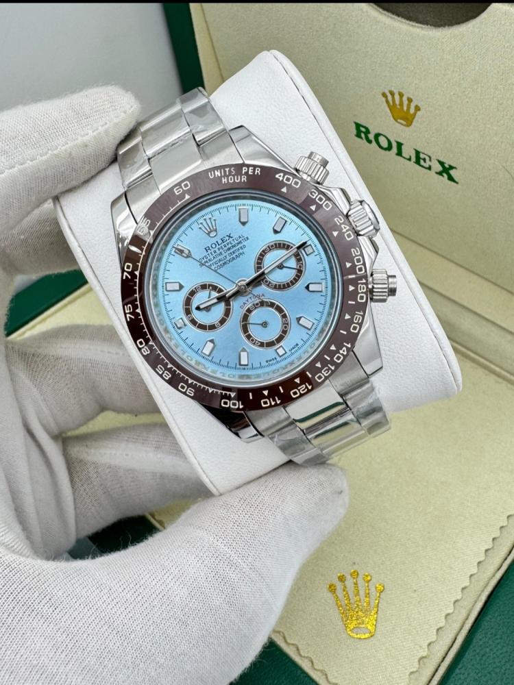ROLEX DAYTONAساعات رولكس دايتونا رجاليالمقاس: 41الجنس: رجالي.المكينة: بطاريهالساعه مضمونه من تغير لون الاستيل او دخول الماء